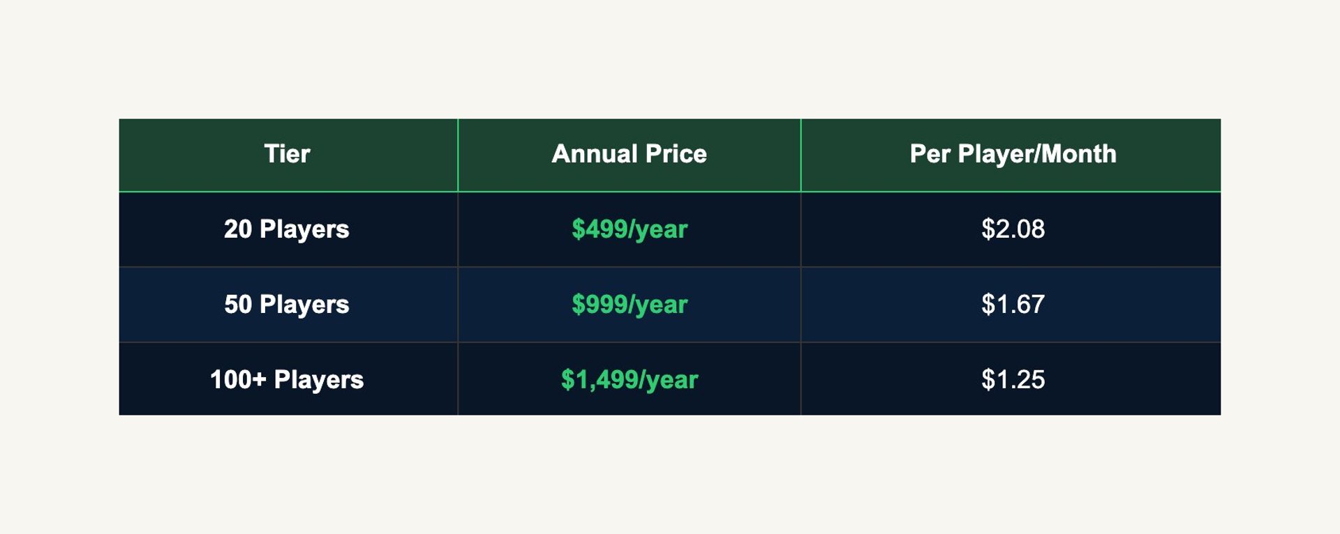 Choose your tier based on the number of players in your program.