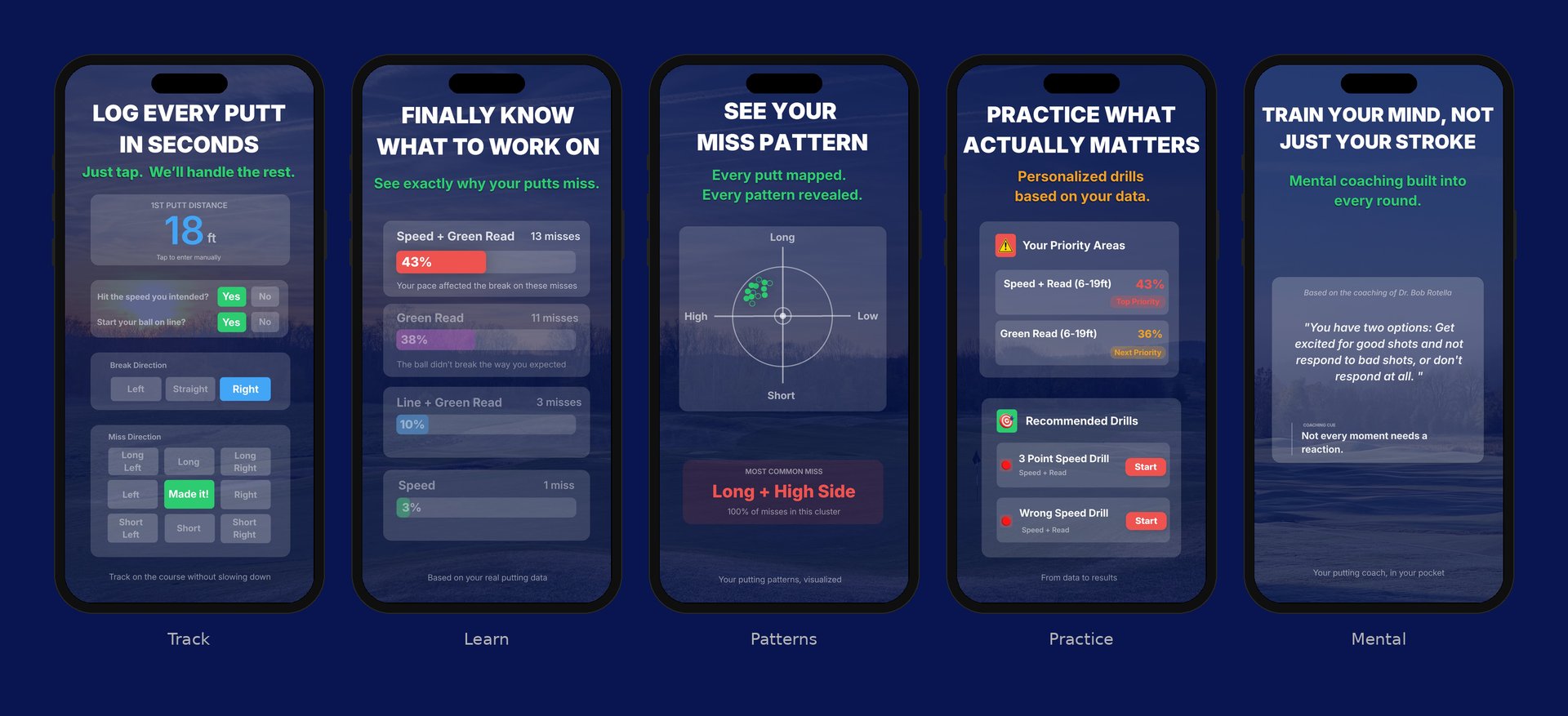 Step 2: Learn The app breaks down your misses into their root causes — speed, line, or green read — and shows your patterns through clear charts and stats.